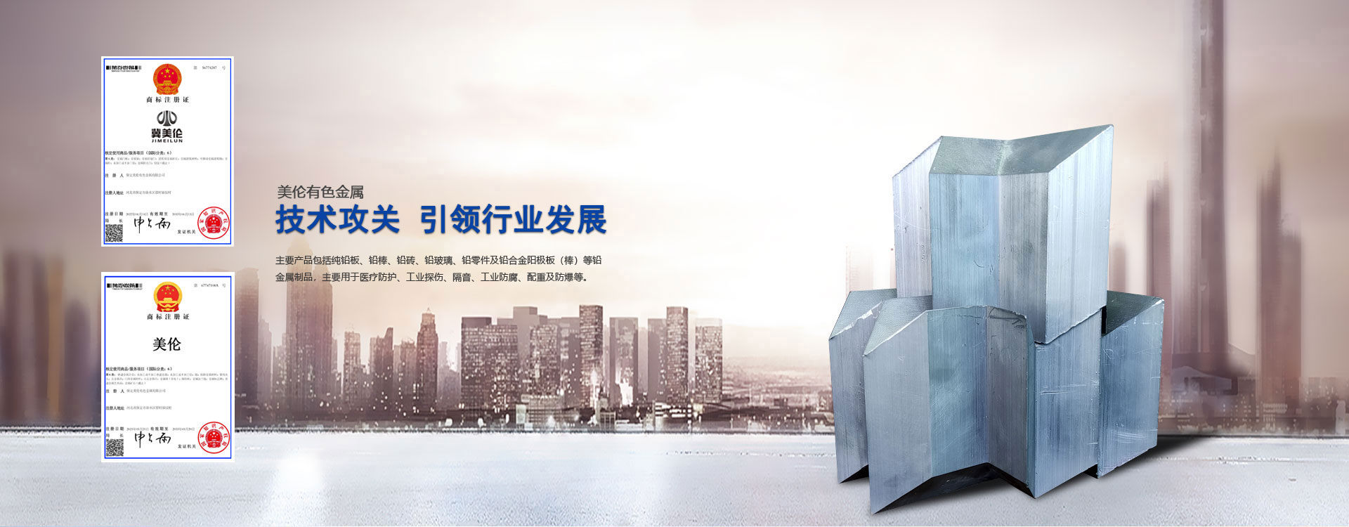 國(guó)內(nèi)極具優(yōu)勢(shì)的專業(yè)生產(chǎn)企業(yè),年產(chǎn)值逐年攀升。主要產(chǎn)品:純鉛板、鉛棒、鉛磚、鉛玻璃、鉛零件及鉛合金陽(yáng)極板(棒)等鉛金屬制品。